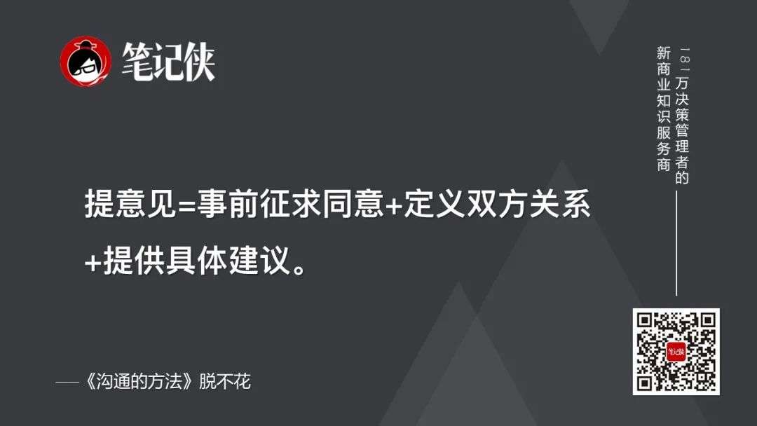 提意见=事前征求同意+定义双方关系+提供具体建议。