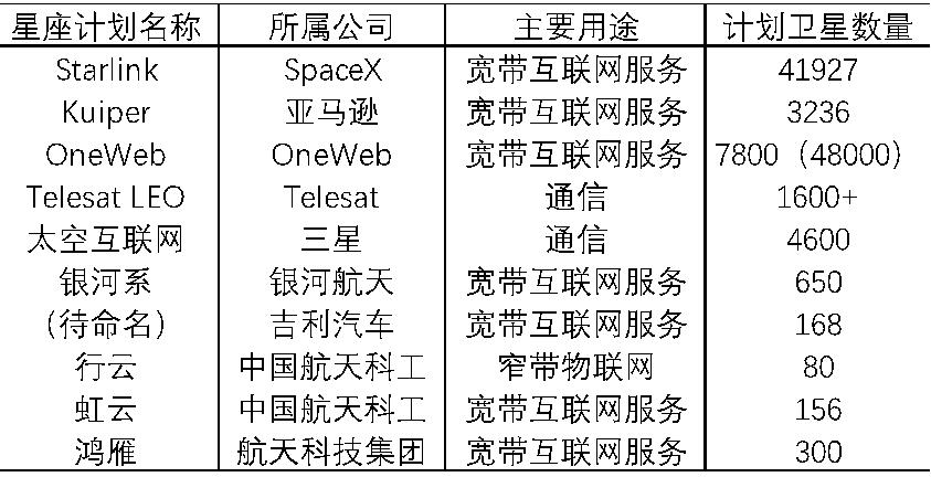 表四:国际主要星座计划