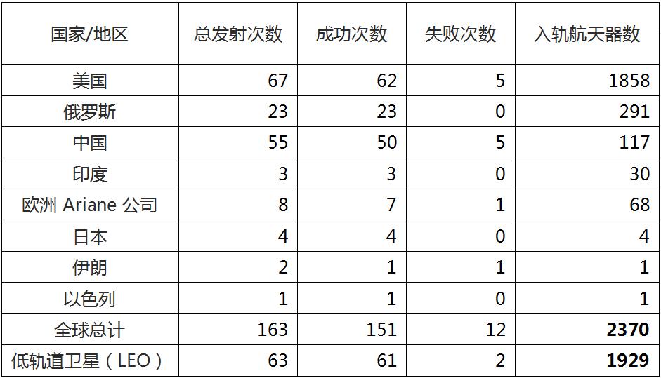 表三:2019-2020年卫星发射统计表