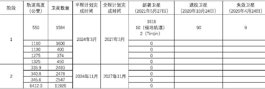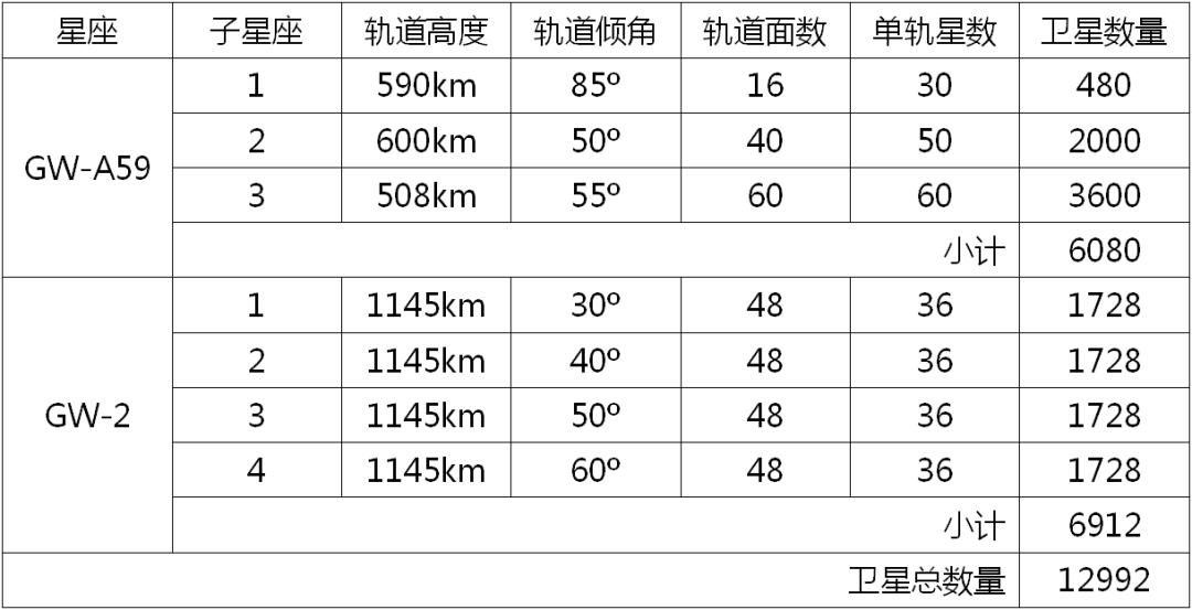 表七:中国GW卫星星座计划