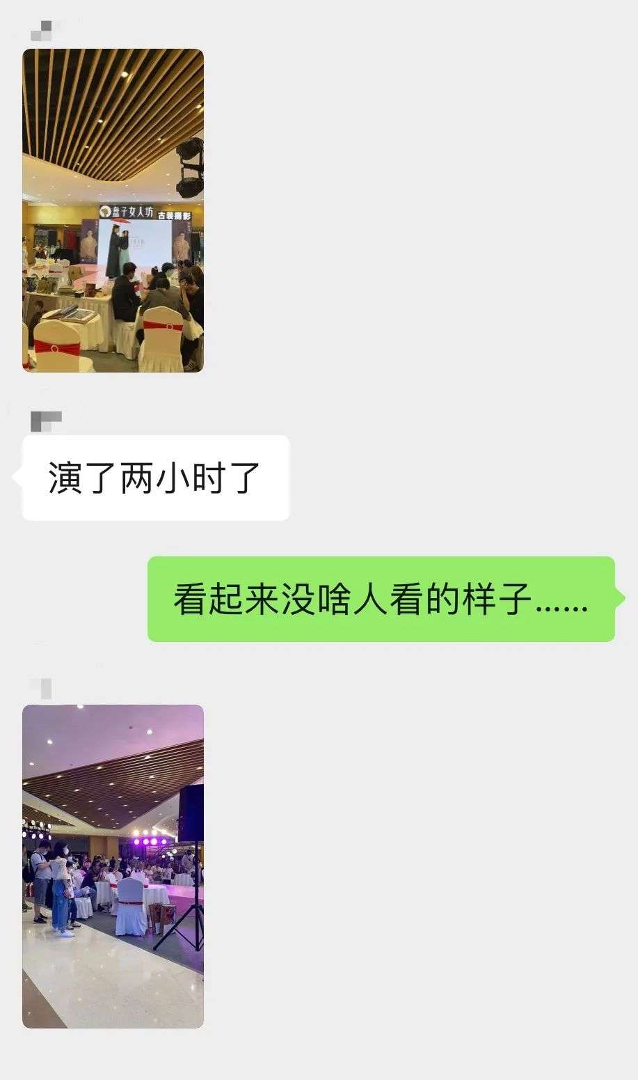 在端午假期一个悠闲的午后她去商场看电影,商场一层正在上演“盘子女人坊”大型古装表演,闲着也是闲着于是驻足观看,还时不时拍几张照片发到工作群附带吐槽。