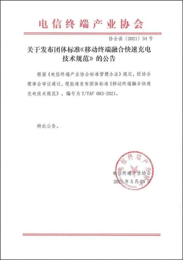 近日,电信终端产业协会发布了《移动终端融合快速充电技术规范》,旨在制定移动终端的融合快速充电标准,推动各个快充协议之间的兼容。