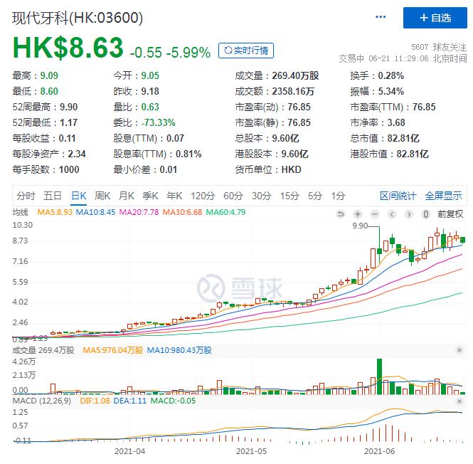 6月21日,最新走势显示,现代牙科年内涨幅超507.75%,单股达到8.63港元,并且股价还有持续上涨的趋势。