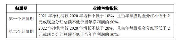 公司业绩则分为两期。第一期需要满足2021年格力净利润较2021年增长不低于10%,同时每股分红不低于2元或者当年净利润总额的50%;第二期净利润需要满足2022年较2020年增长不低于20%,且每股分红不低于2元或者当年净利润总额的50%。