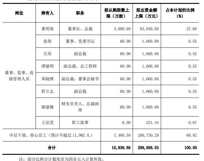 6月20日晚间,格力电器发布公告,公布第一期持股计划。总计1.2万名员工有权“半价”认购1.08亿股格力股票,总价值约55.6亿元。其中格力电器董事长董明珠拟认购3000万股,约占此次员工持股计划的28%。