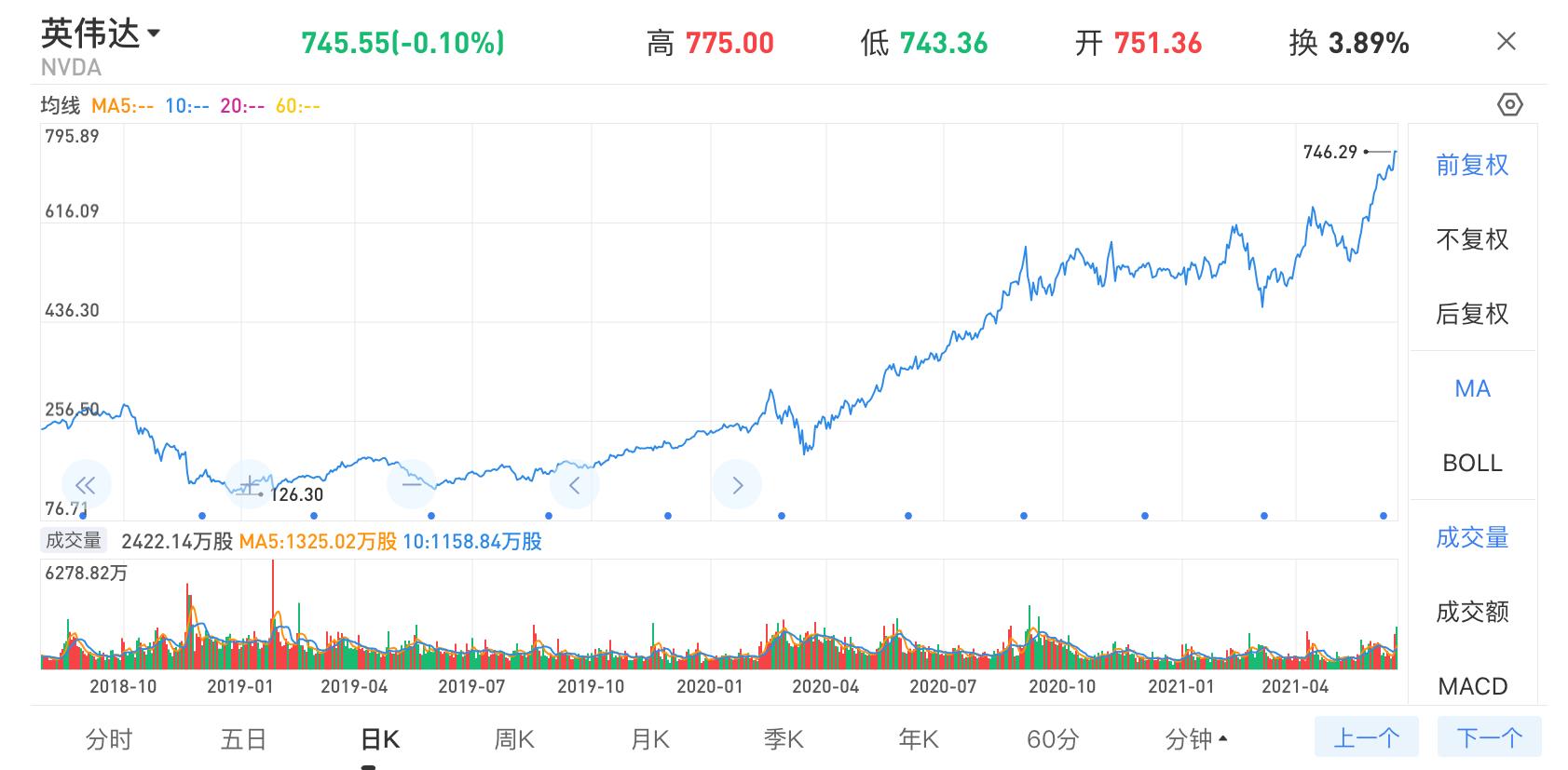 英伟达股价来到历史高点,数据截止至2021.6.21,图片来源:雪球