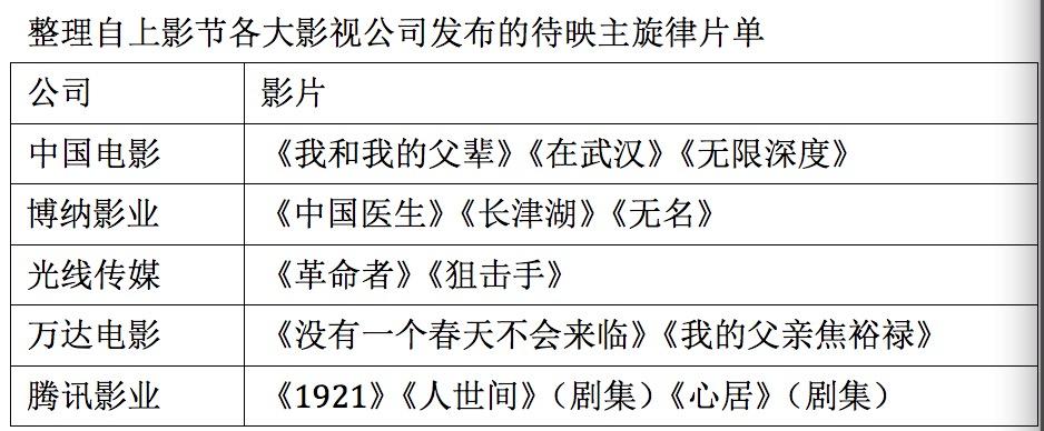 2021年是中国共产党成立100周年,主旋律影片成为市场上的中流砥柱。上海电影节除了宣布《1921》成为开幕影片外,各大影视公司亮出的片单,主力影片也大多是主旋律。
