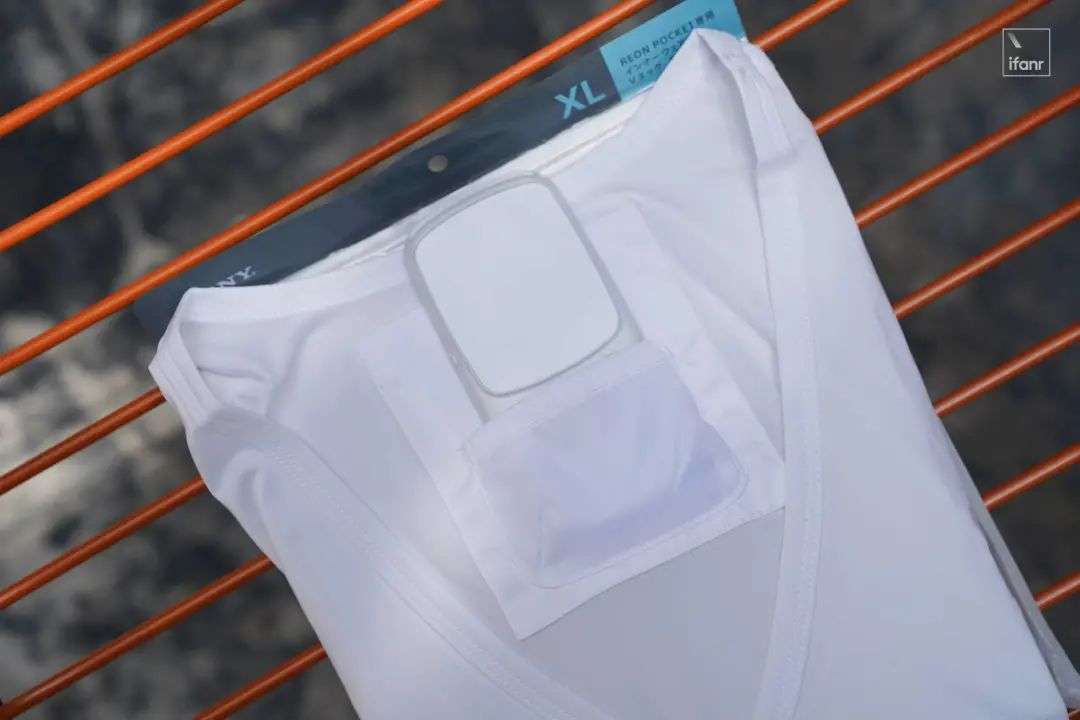 另一种佩戴方式要优雅一些。在其专用 T 恤领座处,有一个小兜,将 Reon Pocket II 塞进去就好。