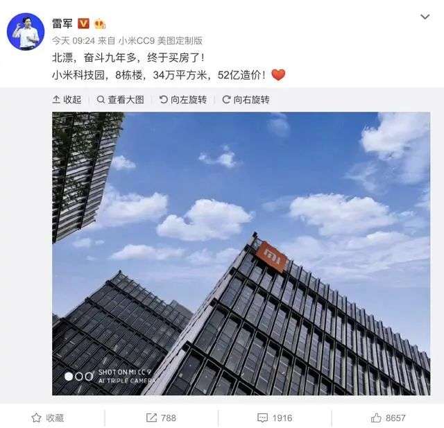 建造小米科技园花了雷军52亿元,当时还上了热搜。