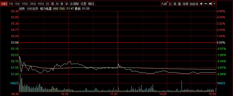 投资者一边吐槽,一边按下了卖出键,6月21日,格力电器早盘跳空低开,全天绿盘震荡,最终报收51.11元,下跌4.79%。