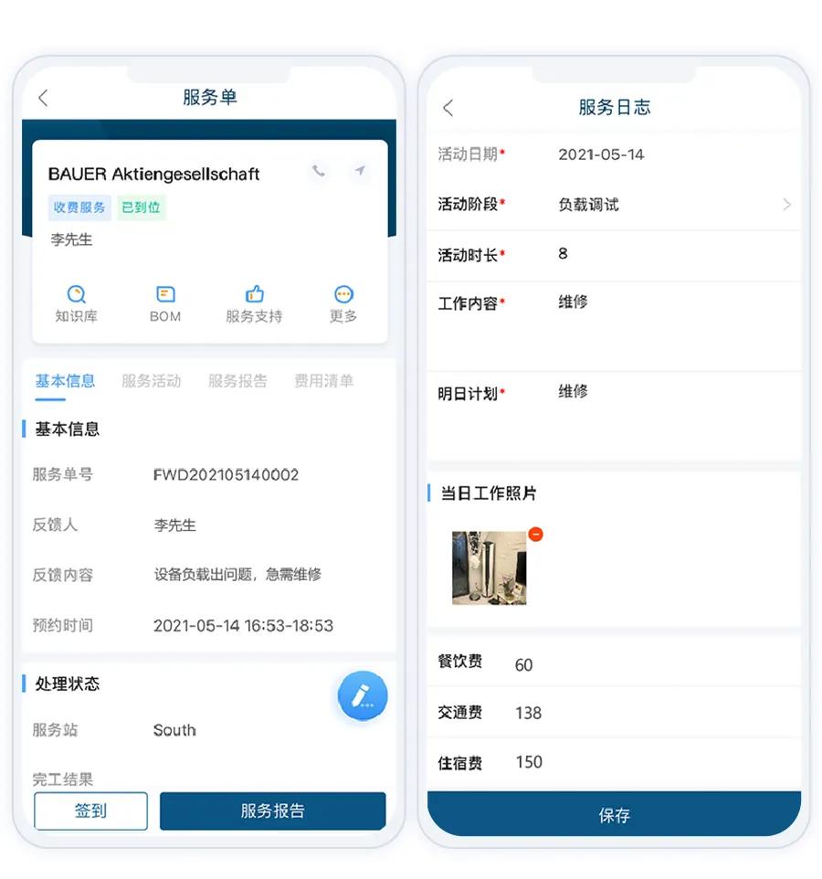 服务工程师的响应时间、工单处理状态、到达时间、每天签到签退、服务日报的内容、维修时长、客户评价等数据都记录在系统中,真正做到对服务流程的透明化、标准化管理。