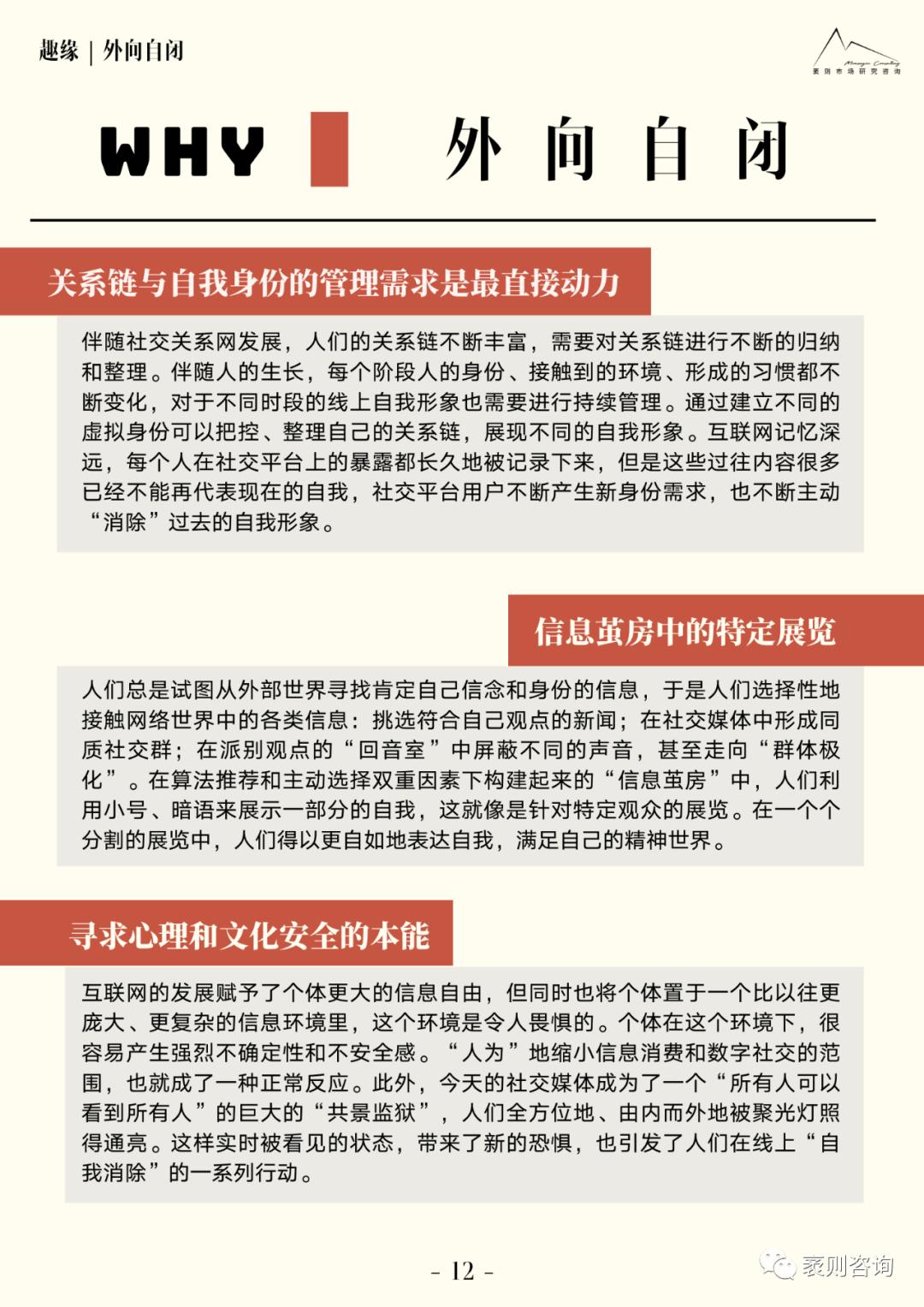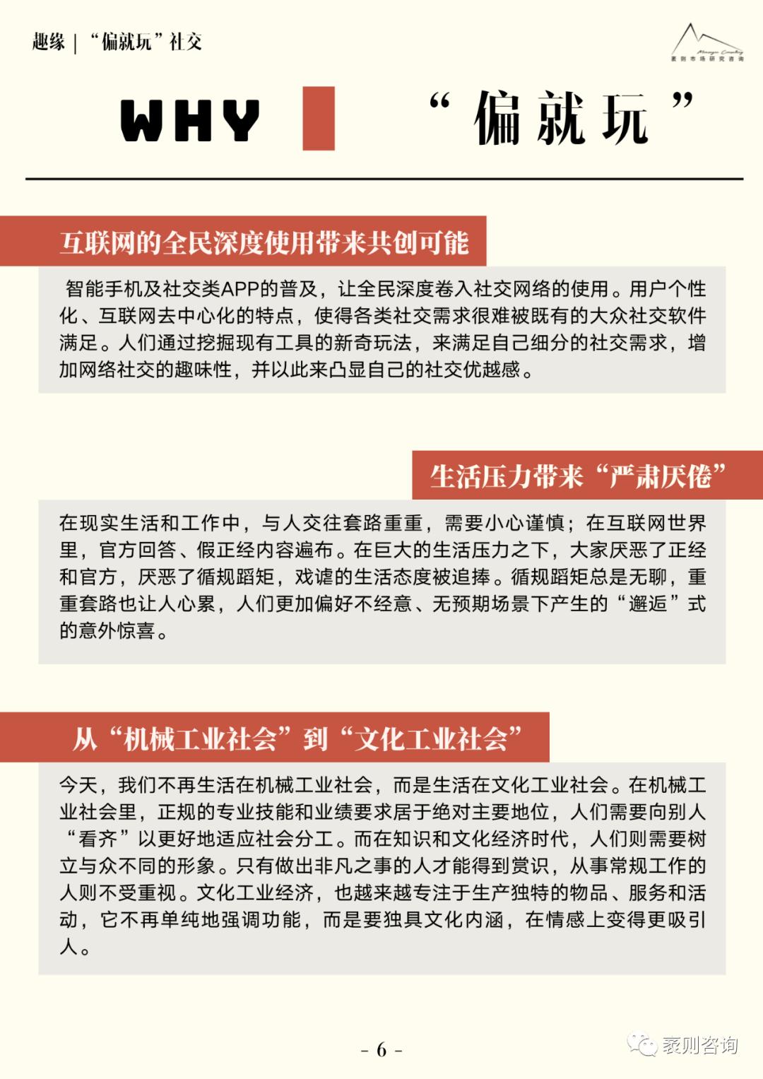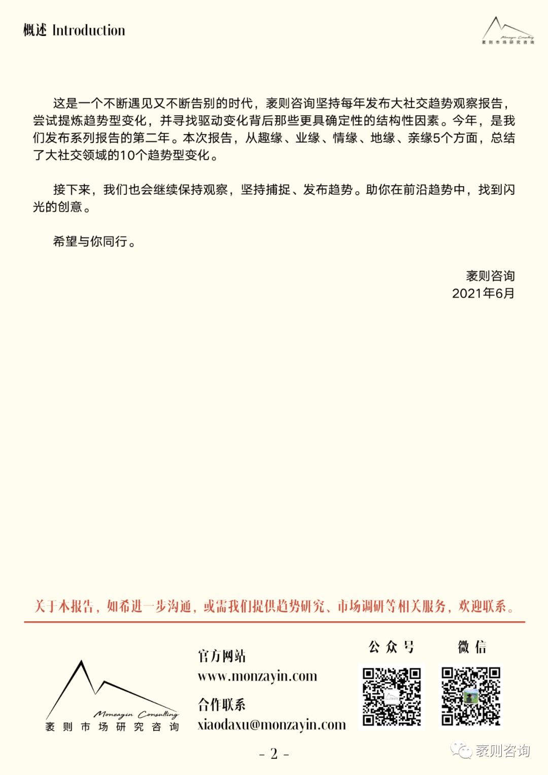 “社交趋势观察”是袤则咨询自2020年发起的一项长期研究。继2020年第一次发布社交年度趋势报告之后,近日我们再次发布《2021大社交趋势观察报告》。本次报告从趣缘、业缘、情缘、地缘、亲缘5个方面,总结呈现了大社交领域值得关注的10个趋势型变化,以下为报告部分内容节选。