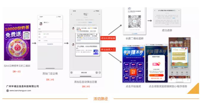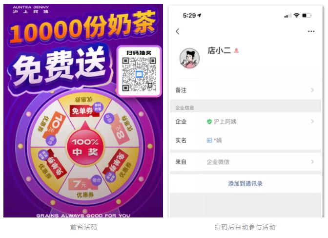 - 引流亮点:「免费奶茶兑换券」和「100%中奖」吸引顾客扫码参加抽奖活动