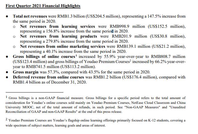 而在今年在线教育行业普遍遇冷的大环境下,而在网易有道5月18日新出炉的2021Q1财报中,学习产品净收入2.02亿元,同比增长达到了279.8%,再创新高。