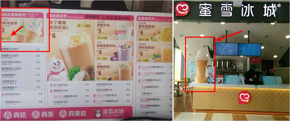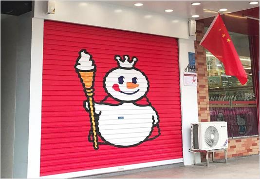 品牌甚至把它印在了卷闸门上,每当店铺关门,路人都能看到硕大的雪王赫然展示在眼前。