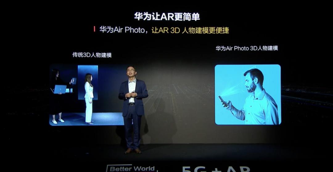 在BWS上,蔡孟波演示了使用AR Engine “生产”AR的过程。通过华为Air Photo,只需要拍一张照片,就能通过算法,将2D照片转换成3D数字模型,让AR 3D人物建模更便捷。