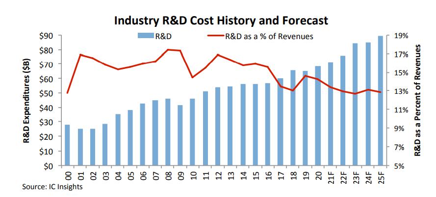 IDM模式的特点是大而全,从芯片设计到制造、封装与测试都独立完成,但其投资大、战线长、收效慢的缺陷在当时逐渐显现,不但每一环都耗资巨大,并且相应的研发费用也水涨船高。