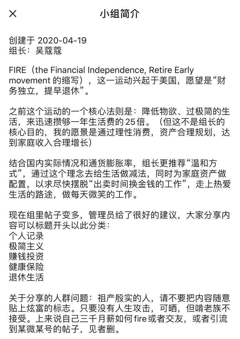 在此背景下,“FIRE生活”豆瓣小组应运而生,迅速聚集起近10万位“生活家”。