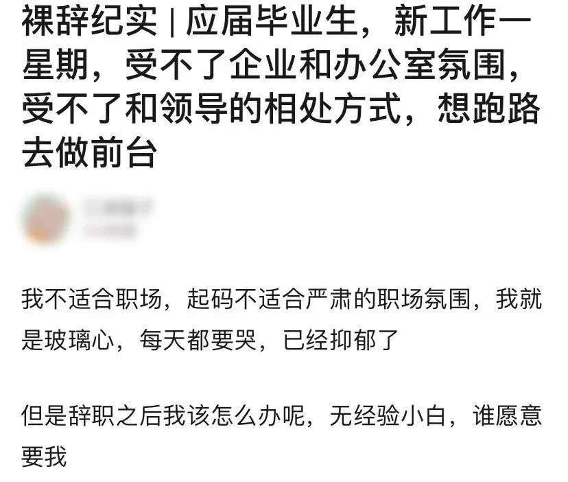 多数情况下,裸辞真的只有一时爽。短视频若拍得现实些,应当是前一秒00后喊着“加班我就辞职”,后一秒就躲进豆瓣嘤嘤嘤了。