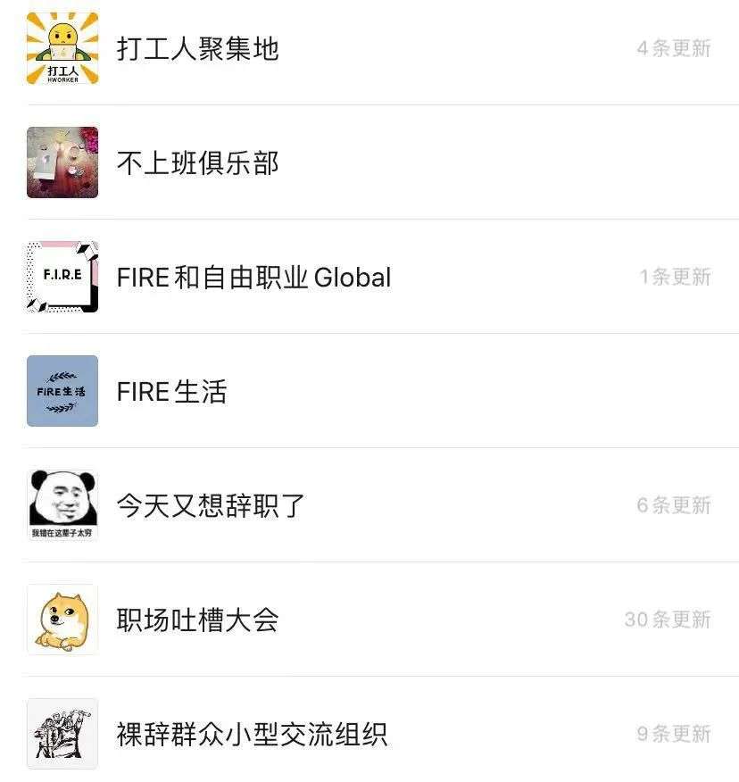 FIRE生活小组被“凡尔赛党”占领后,大批年轻网友流亡迁徙至“FIRE和自由职业Global”、“不上班俱乐部”“家里蹲小联盟”等周边小组,试图探索出一些新兴自由职业,以求告别朝九晚五的社畜生活,实现打工自由。