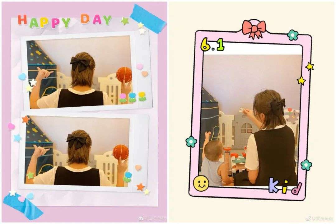 马丽与儿子过六一