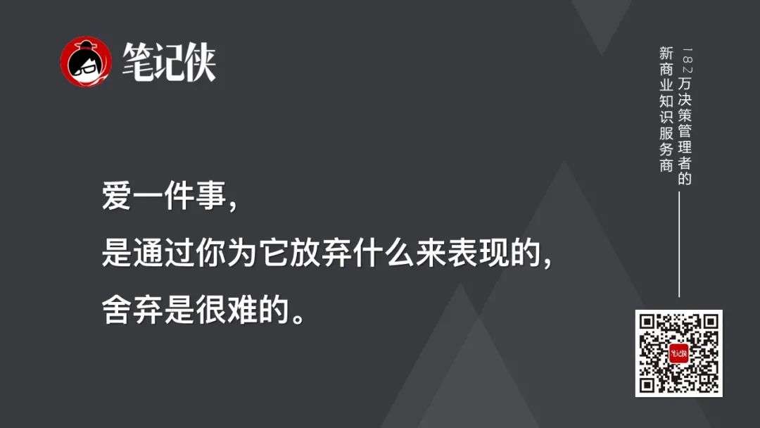 爱一件事,是通过你为它放弃什么来表现的,舍弃是很难的。