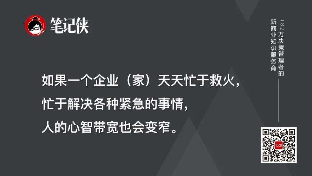 如果一个企业天天忙于救火,忙于解决各种紧急的事情,人的心智带宽也会变窄。