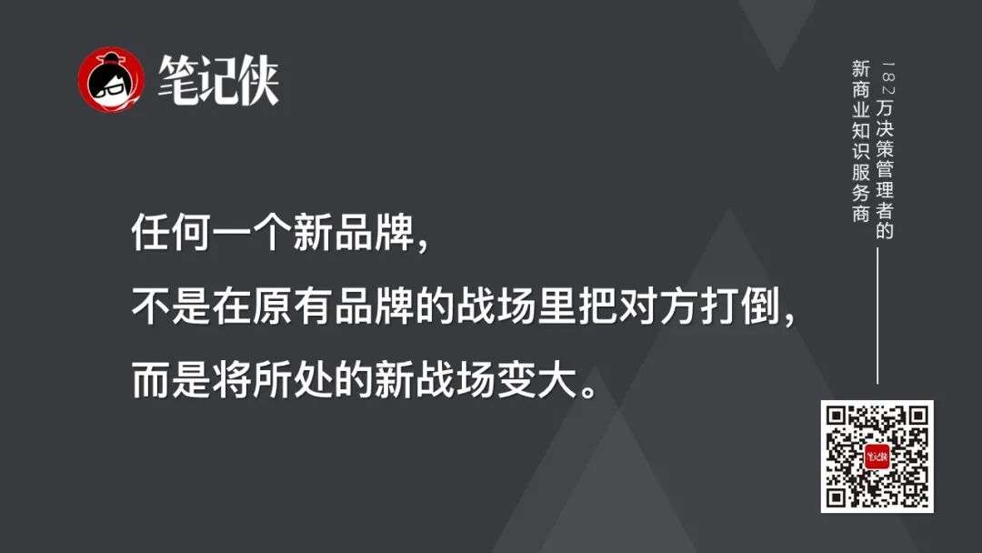 任何一个新品牌,不是在原有品牌的战场里把对方打倒,而是将所处的新战场变大。