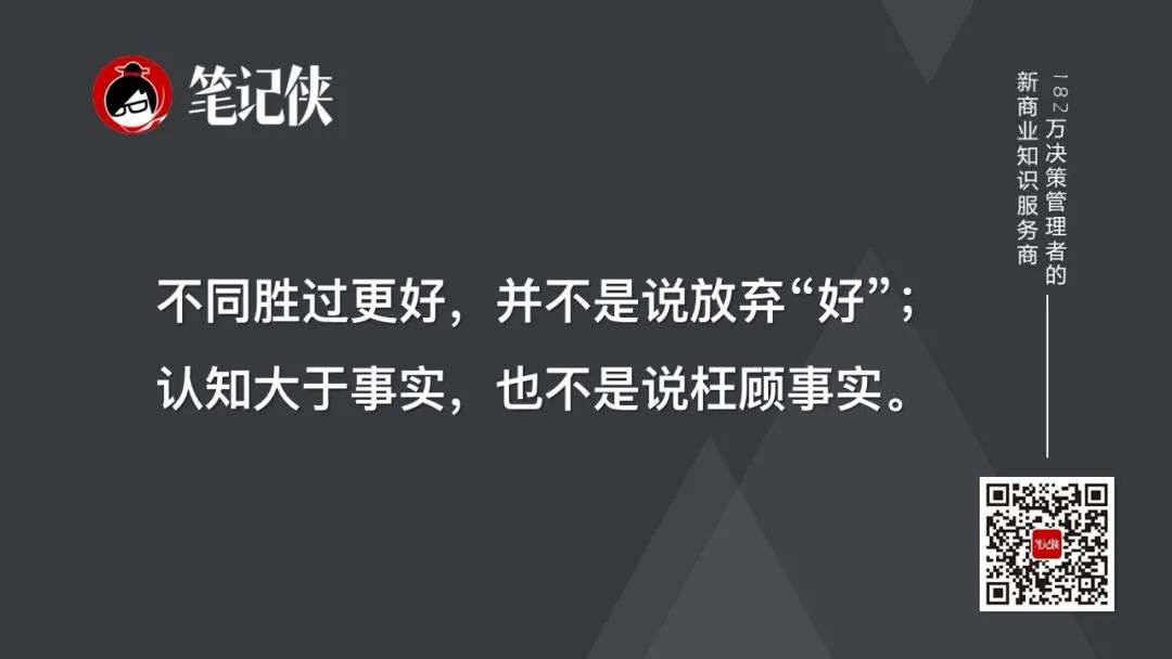 但是,不同胜过更好,并不是说放弃“好”;认知大于事实,也不是说枉顾事实。