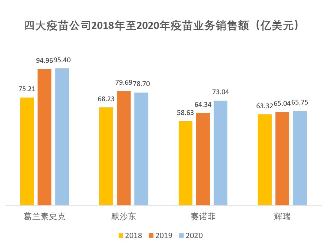 反观传统的四大疫苗公司,它们2020年的营收也不过65.75亿~95.40亿美元。