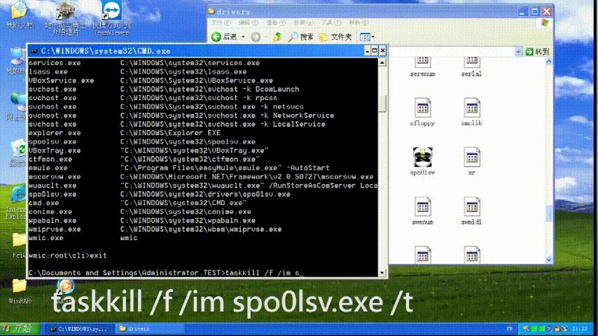 博主发现一个叫spo0lsv.exe的进程伪装成系统进程spoolsv.exe,于是博主通过taskkill指令将可疑进程结束,然后通过查询进程目录找到进程所在的位置,并将其删除,可以看到,此时任务管理器已经可以正常打开了。
