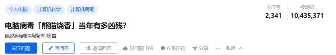 在知乎上,关于“电脑病毒「熊猫烧香」当年有多凶残?”的话题被浏览超过了1000万次。
