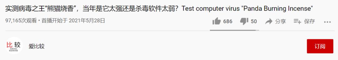 在YouTube上,经常测试各种病毒的栏目“爱比较”就出过几款关于“熊猫烧香”的视频,如今已经有将近十万人观看。
