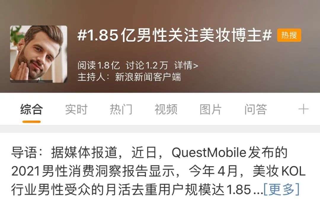 昨天“1.85亿男生关注美妆KOL”的新闻上了热搜,参与到男性专属医美产业链上的人也越来越多,有需求,生意就好做。
