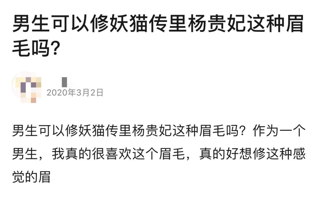 羞涩的男孩跑到姐妹众多的豆瓣小组求助,或者突发奇想畅所欲言,向各位咨询意见“男生可以修妖猫传里杨贵妃这种眉毛吗?”