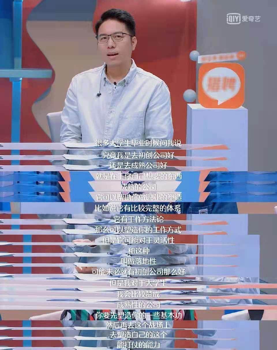 猎聘CEO戴科彬在综艺里详细探讨了:成熟公司vs.初创公司的利弊。