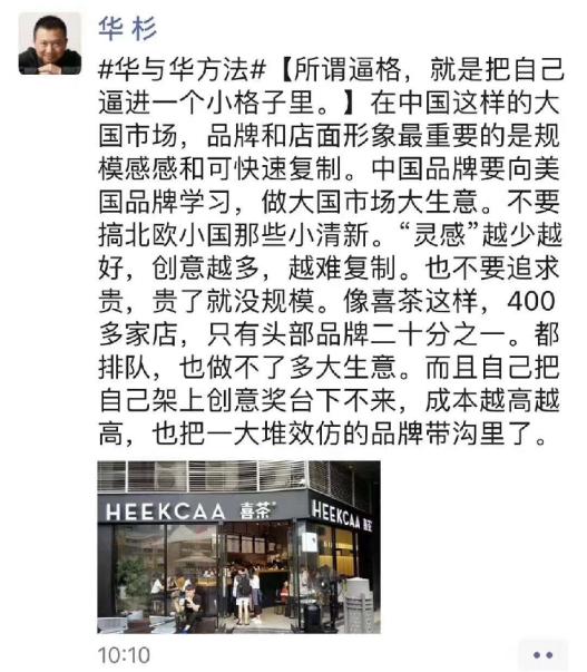 对此,华与华官方渠道放出了一则万字长文回应,但两方的说法基本上是公说公有理,婆说婆有理,你说丑吗?我说有用。紧接着2020年4月30日,华与华的老板华杉又亲自下场点名了喜茶,