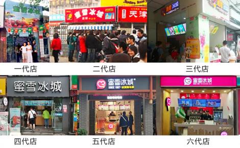 按照华与华的说法就是:用最简单、最大众的元素,用到最彻底。相比之前,蜜雪冰城之前的五代店的确纷繁复杂,但没有丝毫的特色,也让人记不住。