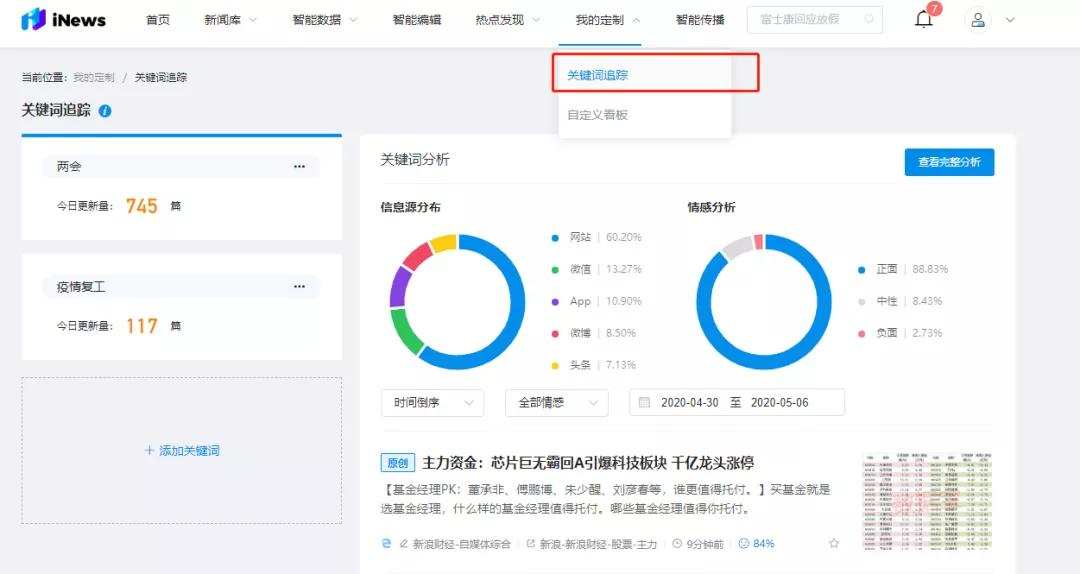 这一功能清晰明了的展现了持续性新闻事件的发展脉络,同时还会对所跟踪专题提供完整的分析报告。