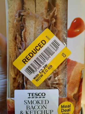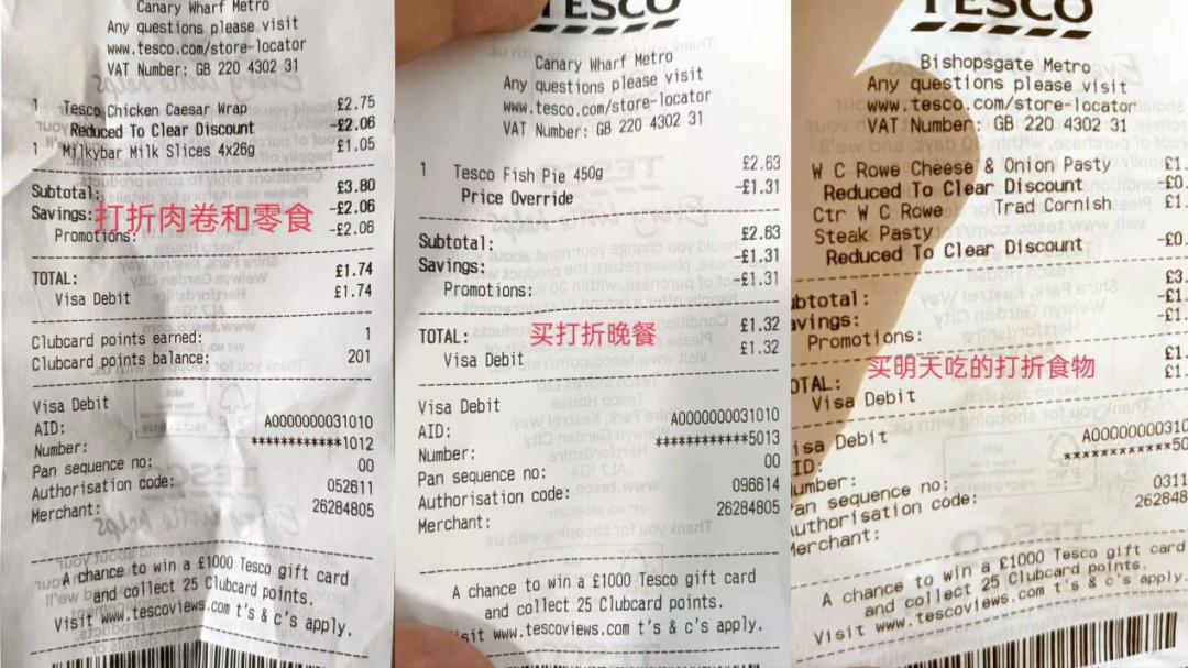 1.74英镑的肉卷和零食,1.32英镑的打折晚餐,0.69英镑的三明治......