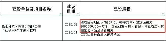 雷达财经注意到,此前在2019年11月29日,腾讯以85.2亿元竞得位于深圳市宝安区西乡街道大铲湾的一地块,用以建设深圳“互联网+”未来科技城。该项目用地面积达80.9万㎡,总建筑面积200万㎡,该项目预计最终可容纳8~10万名员工。