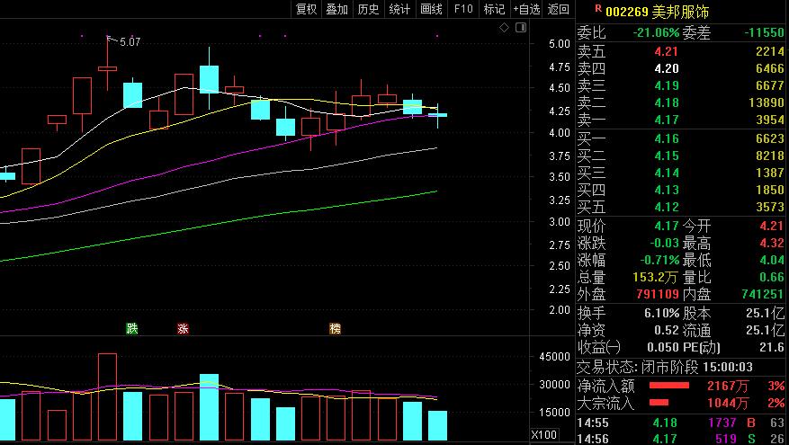 市场没有给美邦服饰面子,6月23日,该股以单日下跌0.71%报收4.17元。