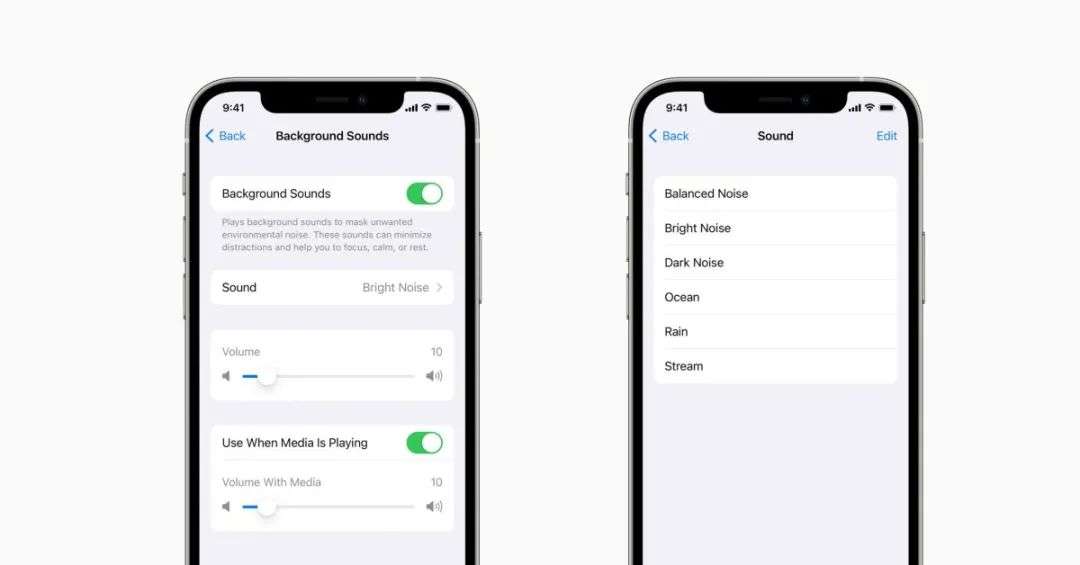 iOS 15 为辅助功能带来了多重改进,最实用的功能当数系统级的白噪音。如果你需要有白噪音哄你入睡、专注工作,使用“系统 > 辅助功能 > 音频/视觉 > 背景音”的这项新功能即可实现。在你使用设备时,背景音会混入或隐藏在系统声音下。