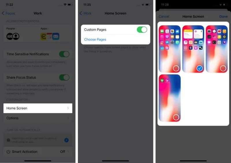你可以创建自定义专注模式,或者采用系统建议的专注模式,该模式可以根据情景,过滤通知和 app。你甚至可以为特定的模式创建专门的桌面,只在其中显示指定的应用,更利于专心。