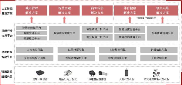 成立于2013年的格灵深瞳,自主研发的人工智能产品主要包括智源智能前端产品、灵犀数据智能平台和深瞳行业应用平台。这些人工智能产品既可以单独销售,也可根据客户需求,将上述产品进行组合以整体行业解决方案形式向客户交付。