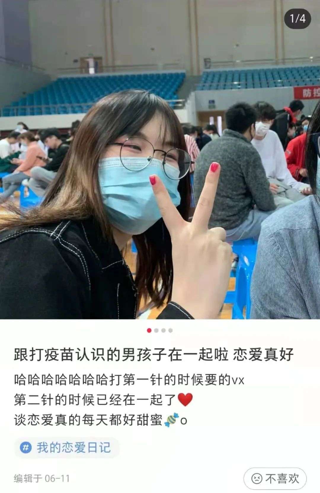 “第一针的时候加的微信,第二针时已经在一起了,甜甜的恋爱终于轮到我了。”