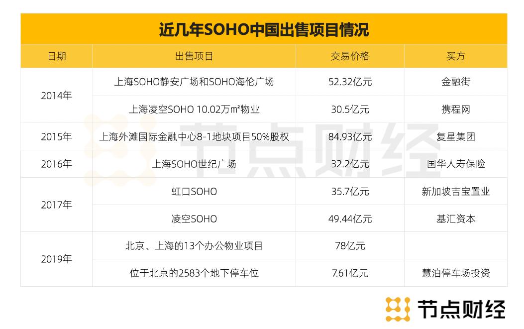 事实上,从2014年以82.8亿元出售上海SOHO海伦广场开始,粗略统计,5年时间,SOHO中国累计出售资产套现高达293.41亿元。