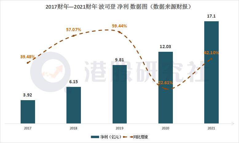 就基本面数据而言,2021财年波司登营收实现了新增长,基本符合发出的盈利预喜,在净利方面也是如此,同比实现了42.1%的大幅增长。
