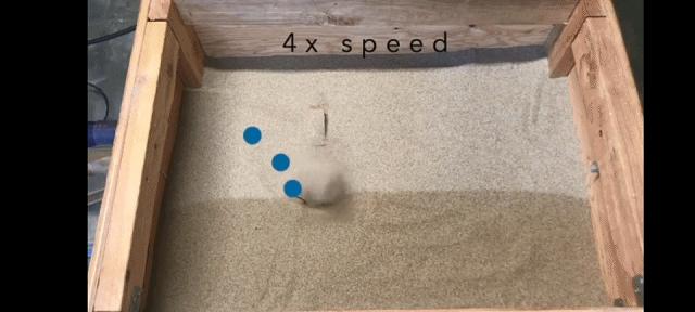 纳克莱里奥说:“我们发现的最大挑战,也是花费时间最长的问题是,当我们切换到机器人在水平方向上挖洞时,我们的机器人总是会浮出来。”他解释道,尽管气体或液体可以均匀的在对称物体的上方和下方产生流动,但在流化沙中,力的分布并不平衡,并且对水平运动的机器人产生了显著的上升力。“将沙子推开,比将其压实要容易得多。”