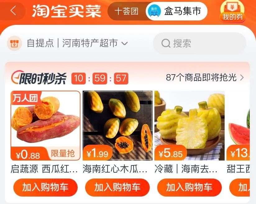 但盒马集市并非在所有开通城市中都有大单量。郑州作为MMC事业群第一城,一位河南区域社区团购平台负责人坦言,“盒马集市在郑州的单量很低”。